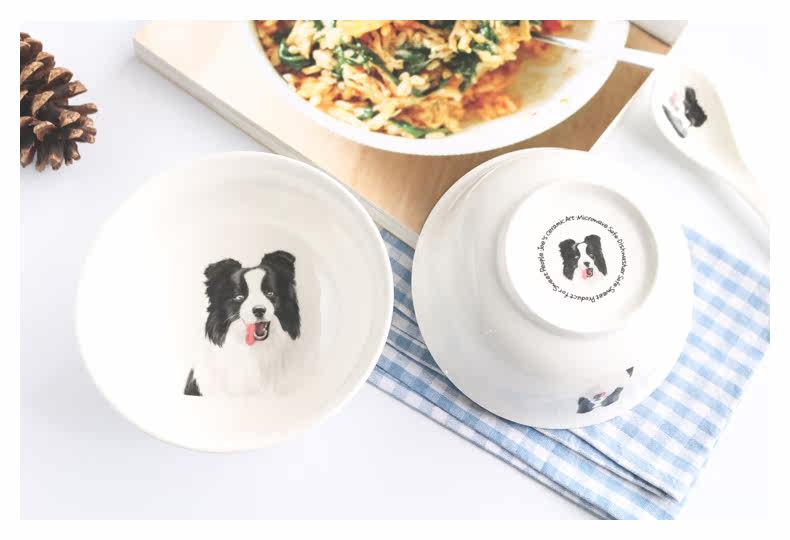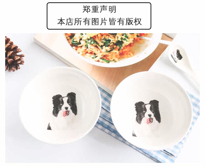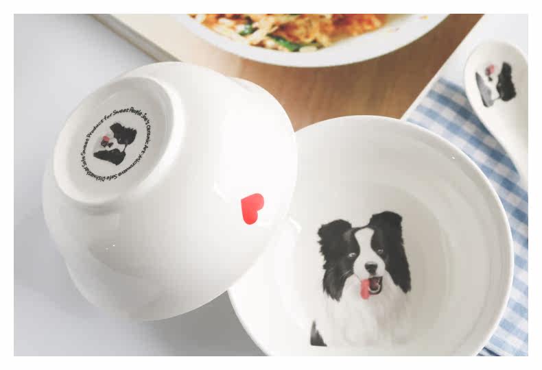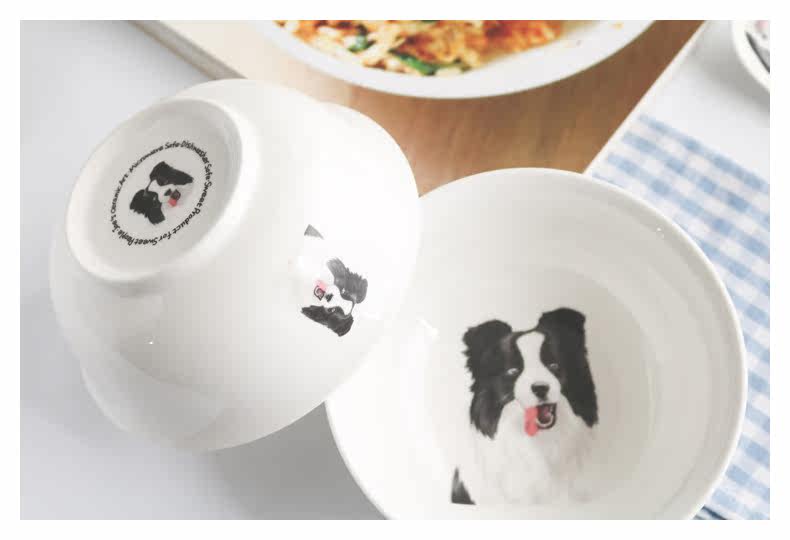 创意边境牧羊犬系列家用陶瓷大面碗沙拉碗甜品水果碗微波炉泡面碗