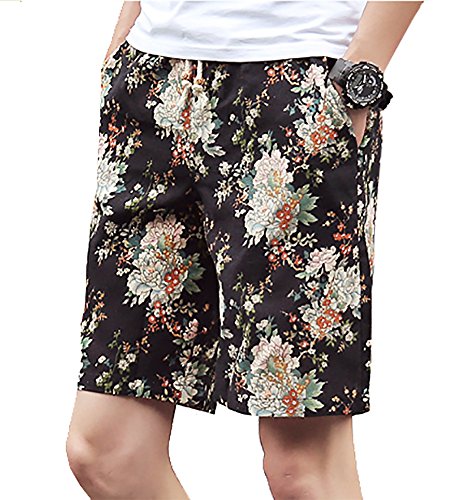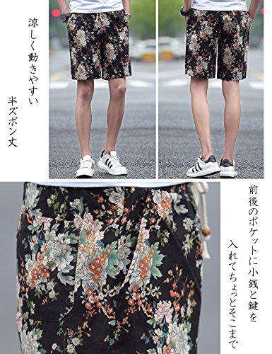 -. Title : (トレテゾーリ)tre tesori メンズ ハーフパンツ 7 分 丈 ショートパンツ 花 柄 短パン ブラックフラワー 3XL