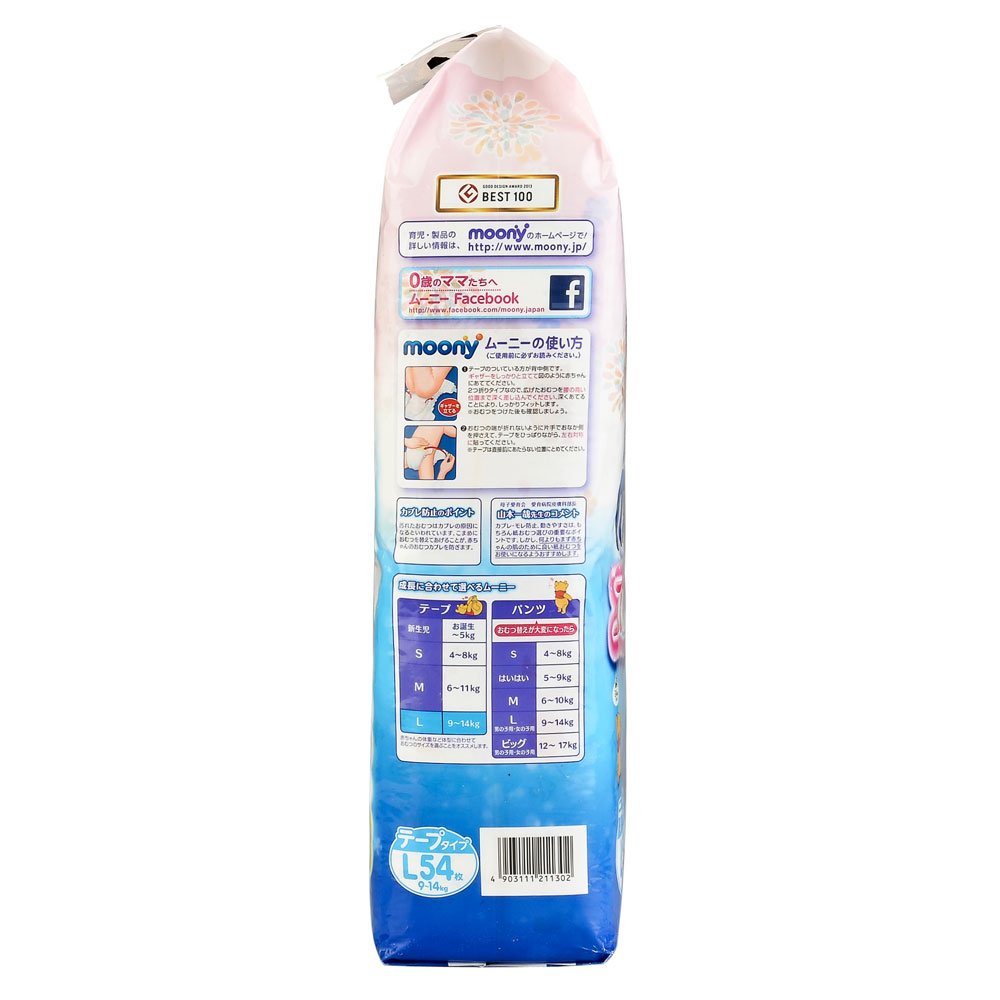 Japanese Diapers Moony L (Large) Size. 54 Pieses. 9-14 Kg
