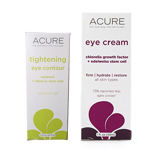 -. Feature : This bundle includes one 1 fl. oz. bottle of Acure Organics Tightening Eye Contour Treatment and one 0.5 fl. oz. bottle of Acure Organics Edelweiss Stem Cell Eye Cream / Chock full of line-fighting edelweiss stem cell and chlorella protect relieve puffiness and dark circles / Lightweight eye treatment delivers fast results for puffiness, dark circles, and the appearance of fine lines / Seaweed extract and Hibiscus Stem Cells boost cell energy, elasticity and antioxidants while Argan extract has shown to provide a visible tightening effect within 15 minutes after application / 3-in-1 blast of licorice root, cucumber and arnica cool and soothe puffiness and dark circles for a brighter, more hydrated outlook