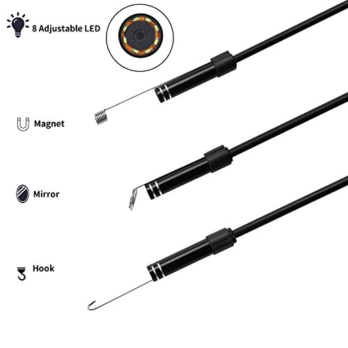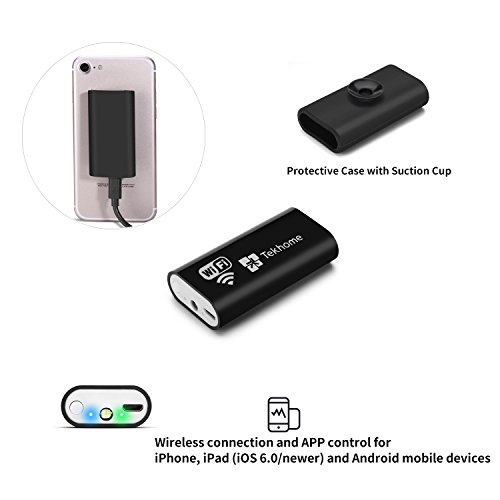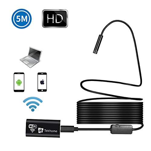 Wireless Endoscope iPhone Android, TekHome USB WiFi HD Borescope, 2 in 1 Semi-rigid Inspection Video Camera for iOS Samsung Smartphone Tablet PC, 8 LED Lights, Waterproof, Black, 16.4 Feet.(WE05)