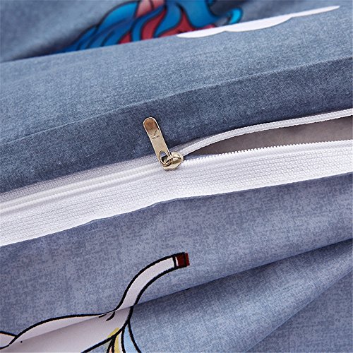 Warm Notice a) Machine washing in cold water no more than 30? and gentle cycle, no bleach, tumble dry low. First time wash without soaking. Direct machine wash, reverse side washing. Can not be long in the sun Exposure, prolonged exposure can also make the bed fade. b) Please kindly allow 1-2 cm discrepancy. c) Please allow a little color difference due to monitor color restrictions. After-sales Service: We made this childrens duvet cover set with high quality material, please don't worry about its quality. Any problems, please feel free to contact us, we will try our best to help you solve it! If you are unsatisfied, please contact us to return the product for a full refund.