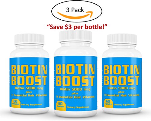 3 Pack - Vitamins for Hair Growth - 5000 mcg of Biotin for Hair Growth - Gold Formula contains Biotin plus 11 Essential Vitamins to Prevent Hair Loss and Promote Hair Growth- Dermatologist Recommended