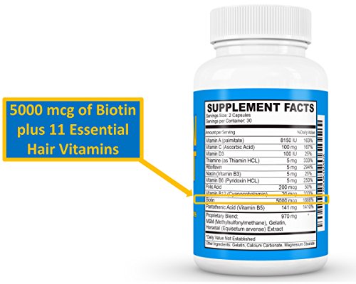 VITAMINS FOR HAIR GROWTH - 5000 MCG OF BIOTIN FOR HAIR GROWTH - GOLD FORMULA CONTAINS BIOTIN PLUS 11 ESSENTIAL VITAMINS TO PREVENT HAIR LOSS AND PROMOTE HAIR GROWTH- UNIQUE ULTRA-FINE POWDER IS ABSORBED EASILY TO ACHIEVE BEST RESULTS - DERMATOLOGIST RECOMMENDED - 100% MONEY BACK GUARANTEE