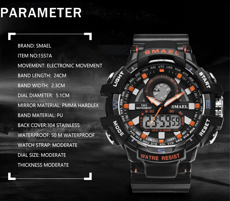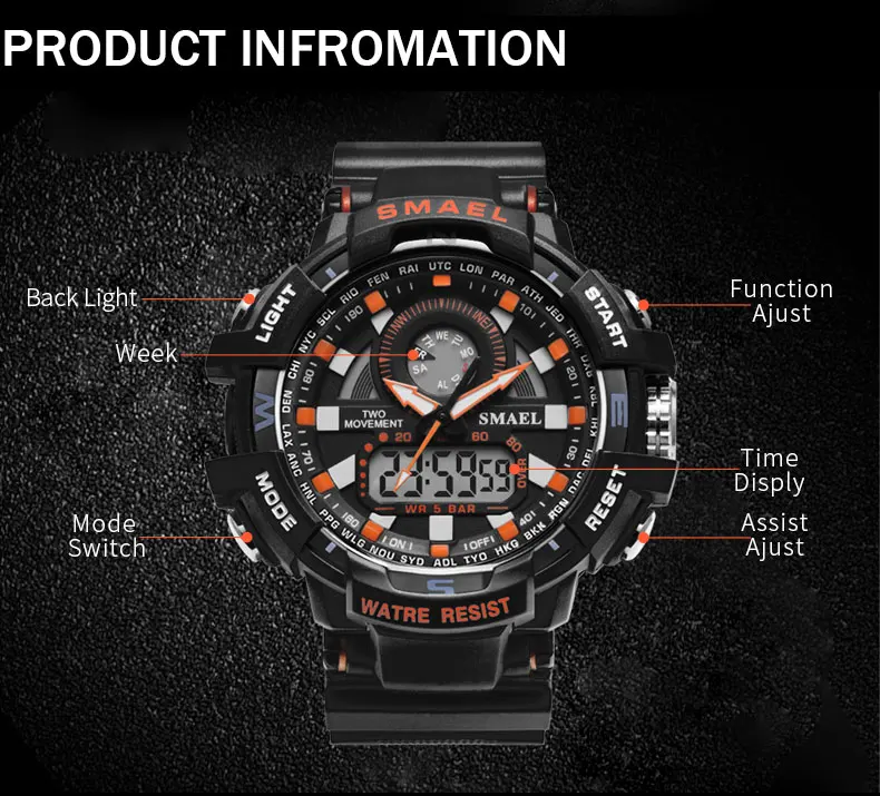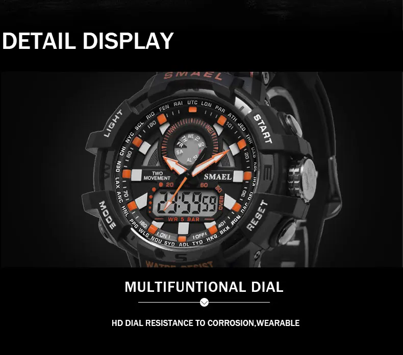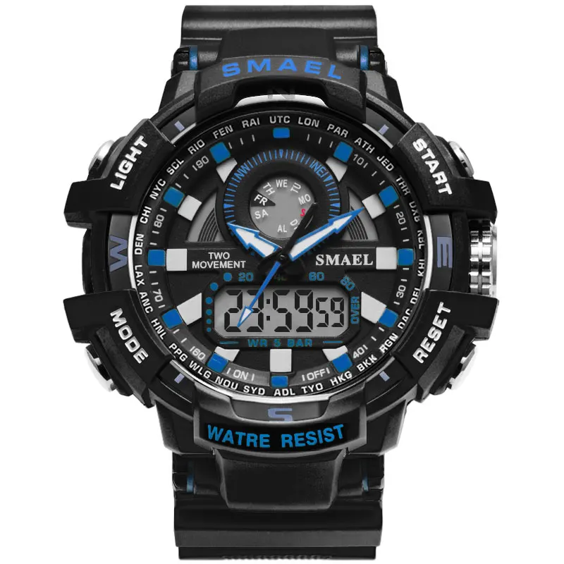 Display:men watch digital quartz Dual Time Wristwatch