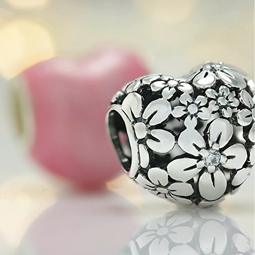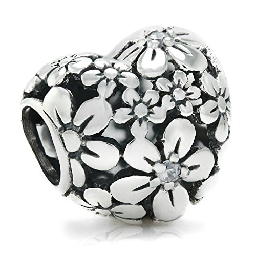 -. Title : BELLA FASCINI Flower Bouquet CZ Heart Bead Charm Sterling Silver Fits Compatible Bracelets and Bangles