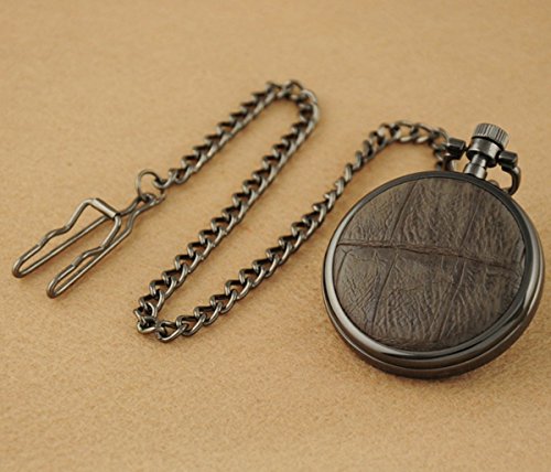 -. Feature : Mens Womens Mechanial Pocket Watch / Hand-Winding Movement / Leather Watchback / Black Steel Watchcase & Watch Chain / Case Diameter: Approx 4.8cm