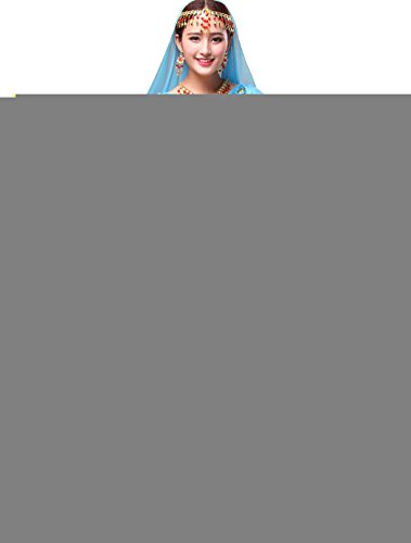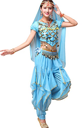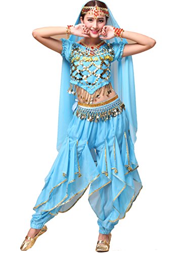 Astage Women`s Belly Dance Costume Set All Accessories Short Sleeve Top With Shells Sky Blue