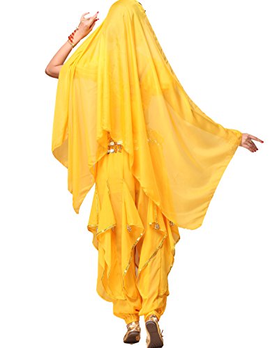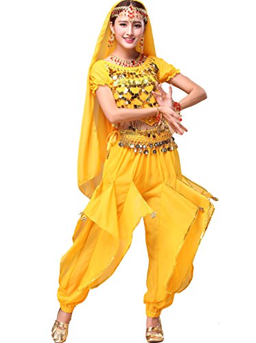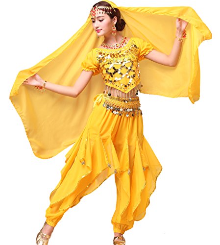 Astage Women`s Belly Dance Costume Set All Accessories Short Sleeve Top With Shells Yellow