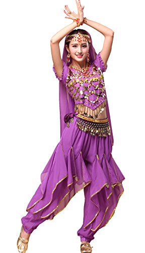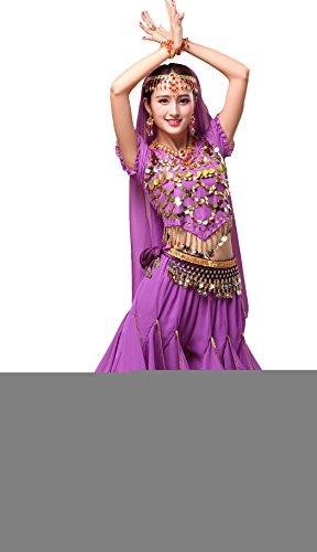 Astage Women`s Belly Dance Costume Set All Accessories Short Sleeve Top With Shells Purple