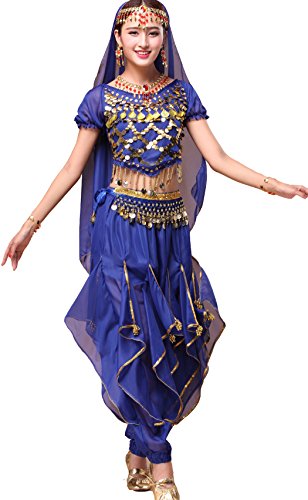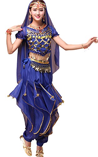 Astage Women`s Belly Dance Costume Set All Accessories Short Sleeve Top With Shells Royal Blue