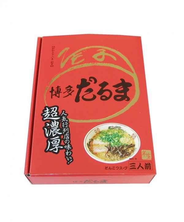 | 原材料 | ●麺(ストレート細麺) 小麦粉、小麦たん白、還元水飴、食塩、加工澱粉、酒精、かんすい ●スープ(豚骨) 豚背脂、醤油、ポークエキス、ポークペースト、ラード、還元水飴、風味油、食塩、砂糖、酒精、調味料(アミノ酸等)、増粘剤(加工澱粉)、乳化剤、カラメル色素 (原材料の一部に小麦、大豆、鶏肉、豚肉、ゼラチンを含む) |