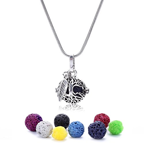 ZEEWELY Tree of Life Essential Oil Diffuser Necklace – Aromatherapy Jewelry - Hypoallergenic 316L Surgical Grade Stainless Steel 20 inch Adjustable...