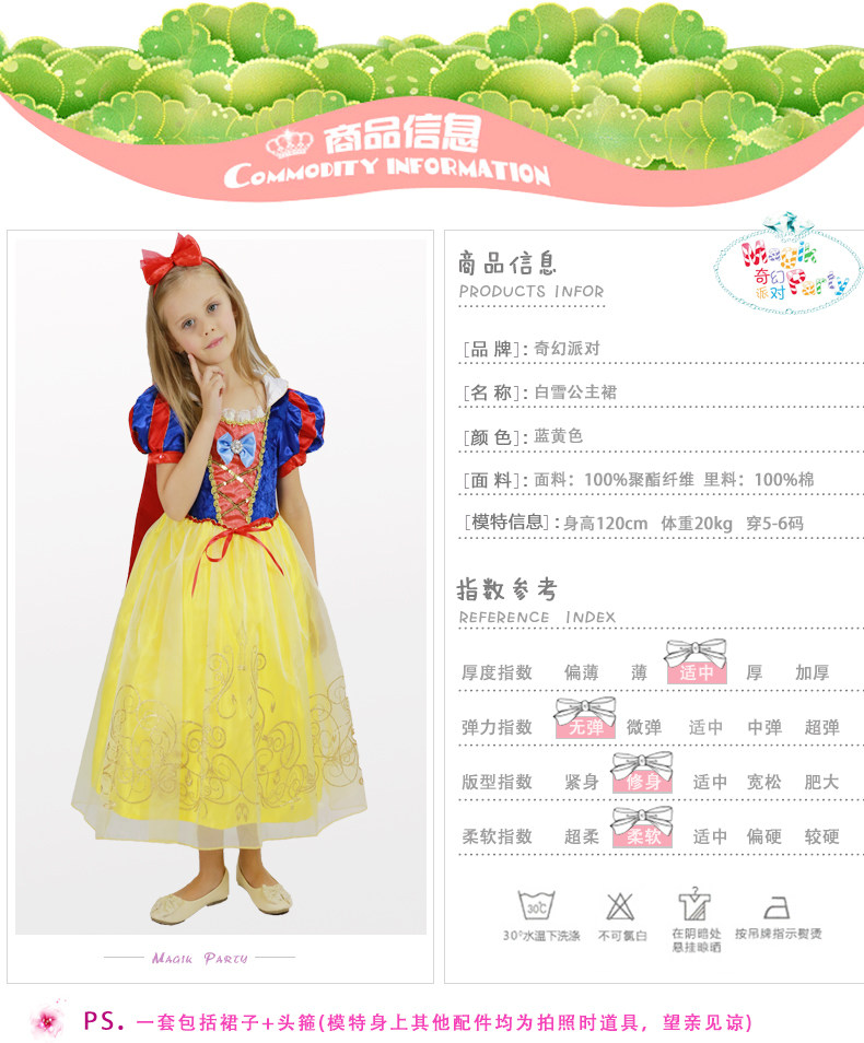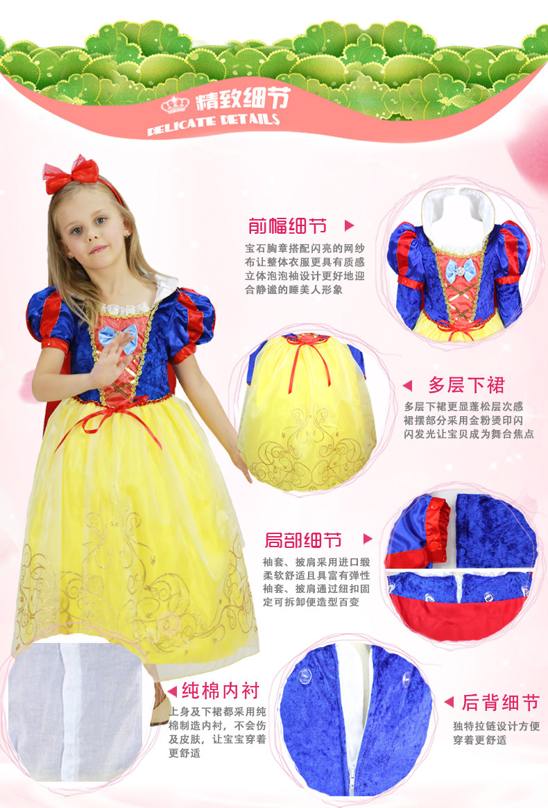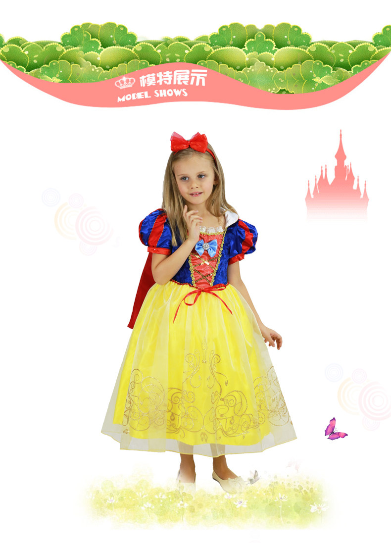 万圣节儿童演出服装 白雪公主裙 短袖礼服蓬蓬裙表演服饰