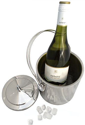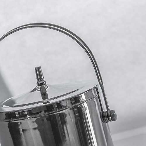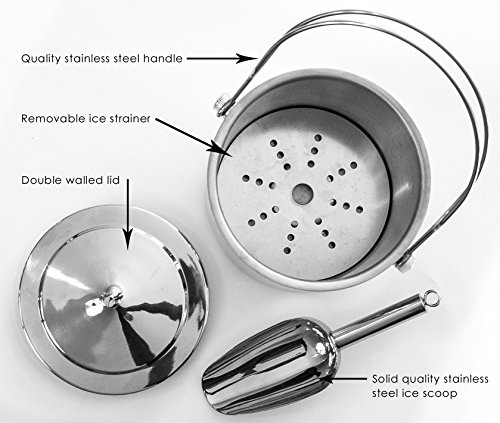 -. Brand : QSM Worldwide -. Color : Stainless Steel -. EAN : 0646437515962 -. Feature : Large capacity bucket holds ½ gallon of ice and easily doubles as a cooler fitting wine and beer bottles easily / Made with high quality stainless steel so it will last a lifetime with excellent quality fittings which won't fall off. Double-wall construction keeps cold inside and prevents outer condensation. Ice lasts for over 6hrs. / Carrying is made easy with the sturdy stainless steel top handle. This is much easier to carry than ice buckets with just side handles / Keep your ice dry and lasting longer with the removable ice strainer located in the base of the ice bucket. Melt water falls through and the ice sits on top / 8 Inch stainless steel scoop makes getting ice out of the bucket easier than flimsy tongs -. Label : QSM Worldwide -. Manufacturer : QSM Worldwide -. Model : QSM002 -. PackageQuantity : 1 -. ProductGroup : Kitchen -. ProductTypeName : KITCHEN -. Publisher : QSM Worldwide -. Studio : QSM Worldwide -. Title : Premium Stainless Steel Ice Bucket & Scoop. Quality Double Walled Insulated Cooler Bucket to Hold ½ Gallon of Ice, Cider, Wine or Beer Bottle. Removable lid and 8 Inch Scoop Included -. UPC : 646437515962