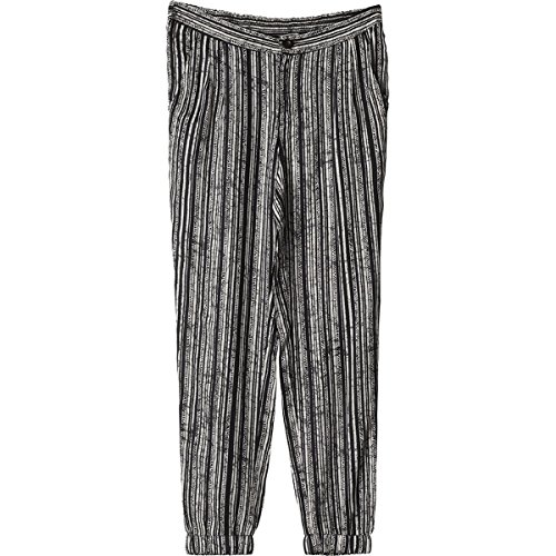 Button fly closure at center front with stitch detailing across waistband and smocking at back
