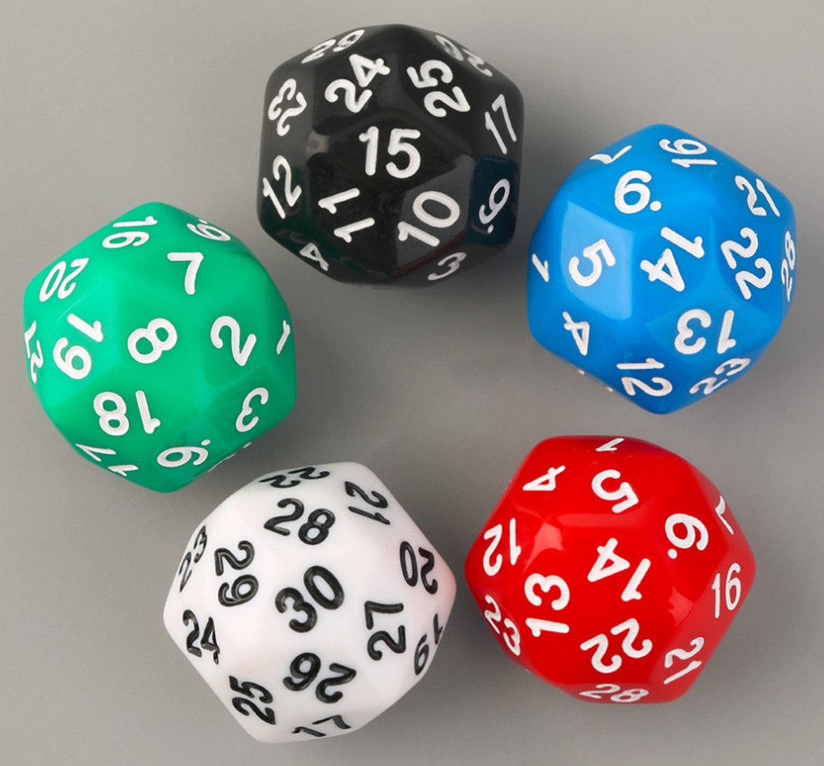 【5個セット】 30面 サイコロ 小 ゲーム ダイス おもちゃ 5色各1個 カラフル 25mm