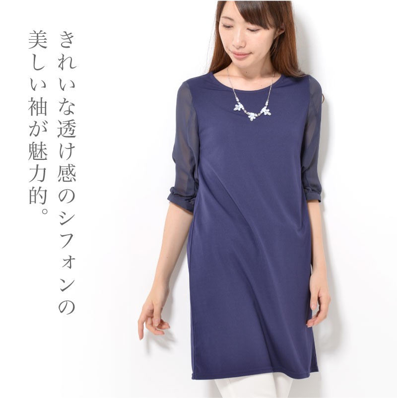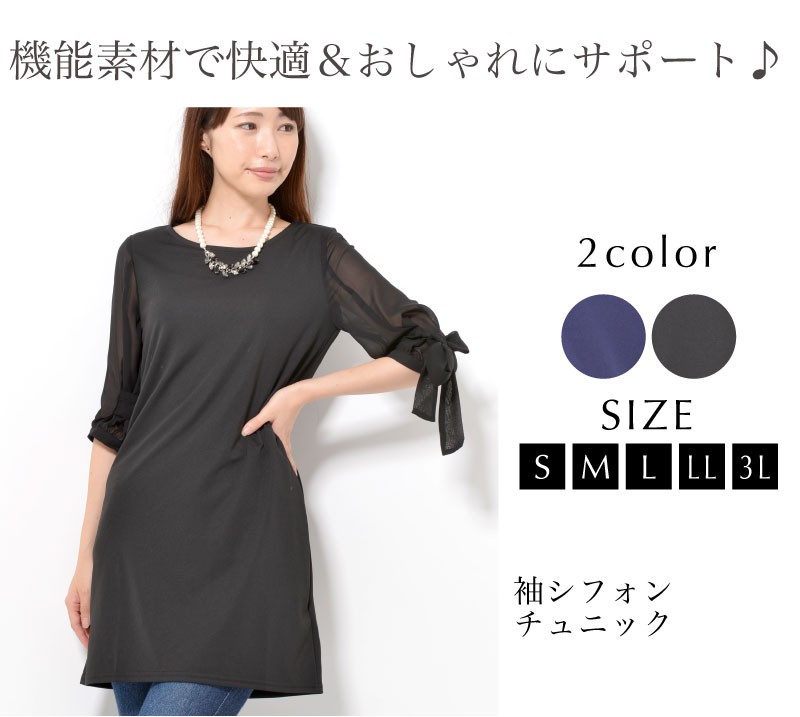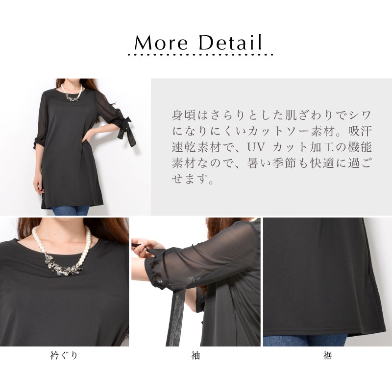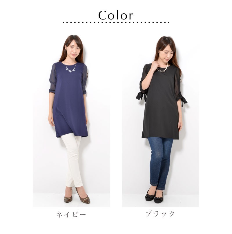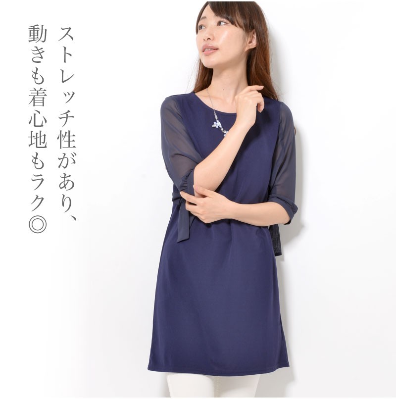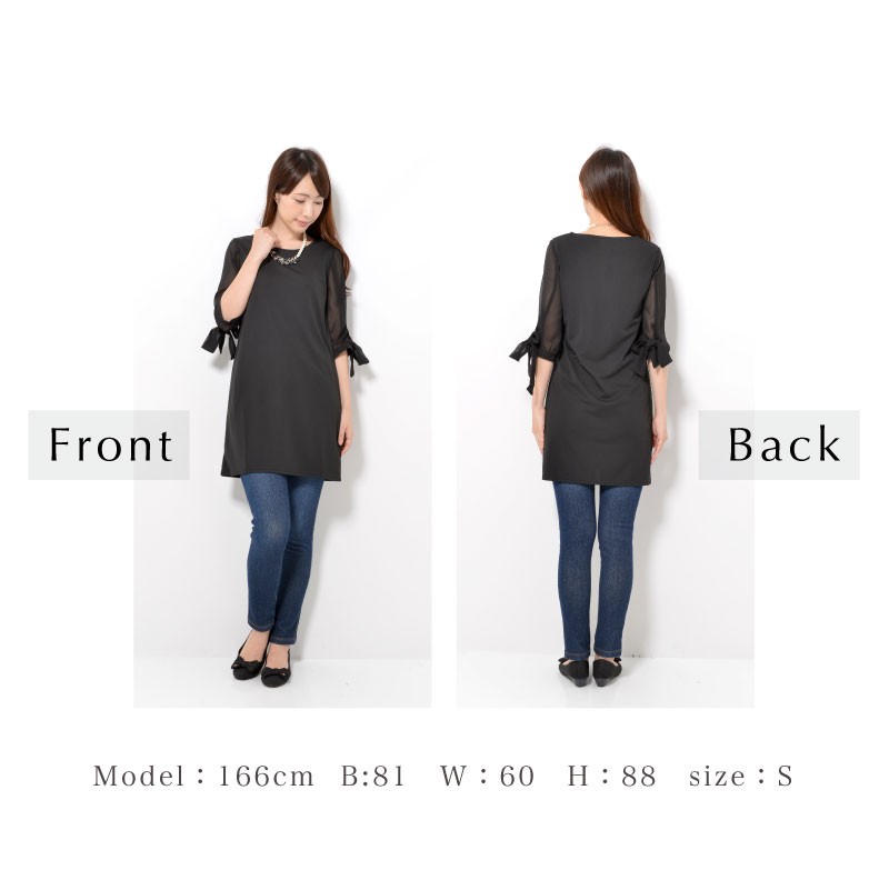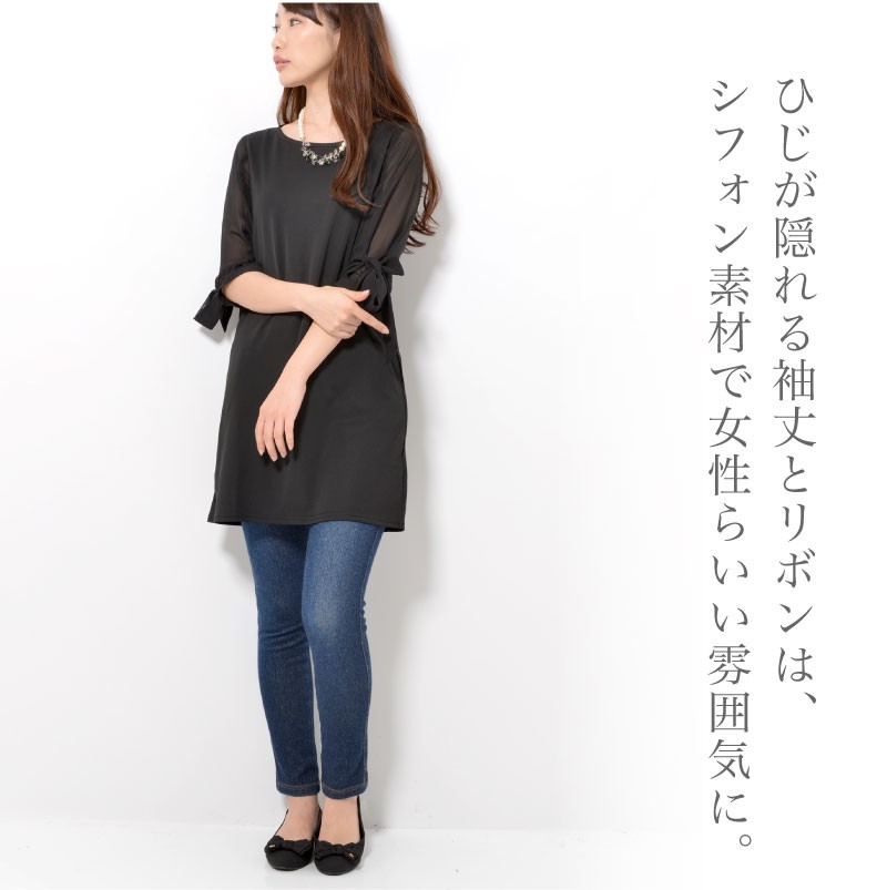 ひじが隠れる袖丈とリボンは、シフォン素材で女性らいい雰囲気に。