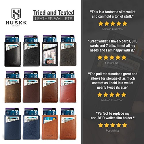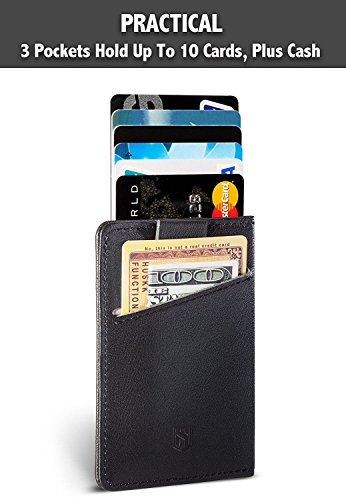 -. Feature : MINIMALIST WALLET : Ultra-thin men's leather card holder designed to hold up to 10 cards (1-2 in each side pocket and up to 6-8 in the middle pocket). This minimal style makes the wallet comfortable for front pocket carry of credit cards, cash & an ID / FULL-GRAIN LEATHER : Created with 100% natural Italian leather, this wallet is durable, flexible and timeless. Leather is a natural material so we recommend you avoid excessive exposure to water, heat and sunlight. / SUPERIOR CRAFTSMANSHIP : Designed in London, UK, this full-grain leather wallet has been expertly crafted with great attention to detail. It is fitted with an intuitive pull-tab that provides instant access your cards in the center pocket. It is also available in a range of colors. Choose from tan, black, blue or dark brown / SECURE WAY TO CARRY MONEY : This credit card holder comes equipped with anti-theft RFID blocking technology to keep your information safe from electronic thieves. This wallet is same size as a money clip or a card case, but with far more functionality / 100% QUALITY GUARANTEE : We're a small family ran business. We know you'll love our wallets, but if for any reason you're not 100% satisfied, let us know and we'll do everything to help you: refund or a replacement, whichever you prefer. Planning to buy this as a gift? Make sure to specify at checkout