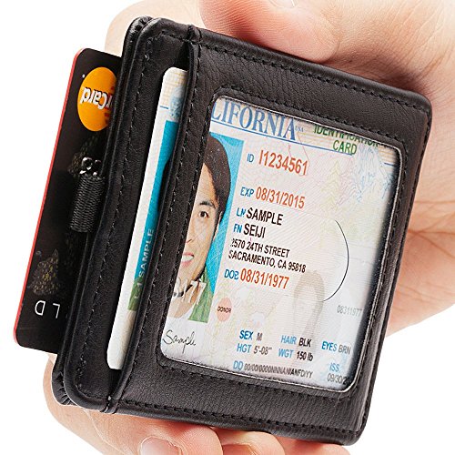 -. Title : Slim Wallets for Men Leather - RFID Front Pocket Card Holder Sleeve - RFID Blocking