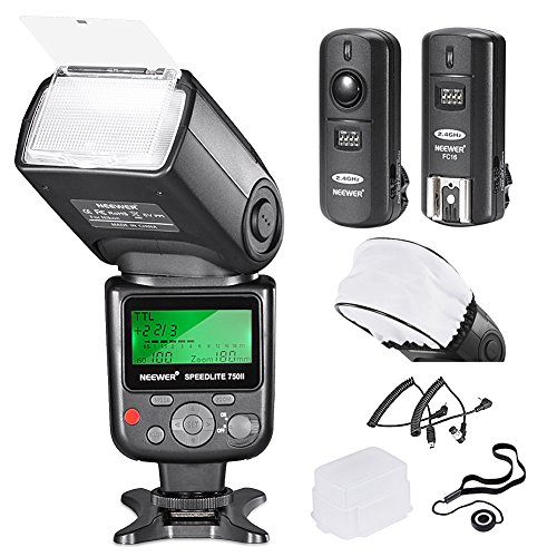 - Feature : Powerful Flash with High Guide No. 58 (m) / 190ft(at 105mm focal length,ISO 100 in meters/feet). / 2.4GHz Wireless Flash trigger with 3-in-1 Functions: will trigger off-camera flash units, studio lights and cameras from up to 100meters / 328 feet away / Charging socket for external power pack: adds a charging socket for external power pack. PC synchronous port: simple for you to use the PC synchronous line. / Kit includes: Neewer VK750 II Photo I-TTL Auto-Focus Dedicated Flash + Wireless Camera Flash Trigger and Camera Remote Control Function + 2 Cables(N1-Cord+N3- Cord)for Remote Control + Hard Flash Diffuser + Soft Flash Diffuser + LensCap Holder / Backed with Neewer 1-Year 100% Satisfaction Guarantee.