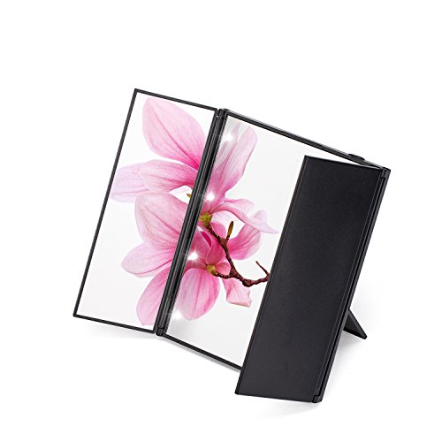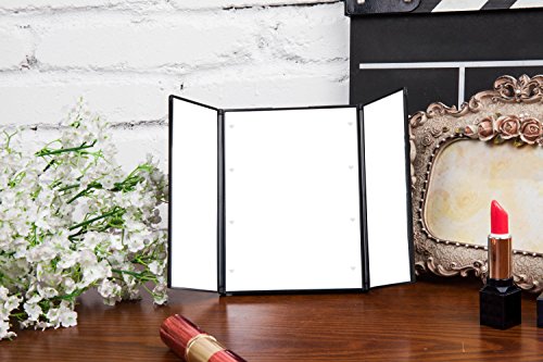 - .Tri-FOLD DESIGN: Tri-Fold Lighted Led Mirror, You can freely fold mirror, up and down, left and right rotation ,observing from multi-angles, which makes you make-up more easy