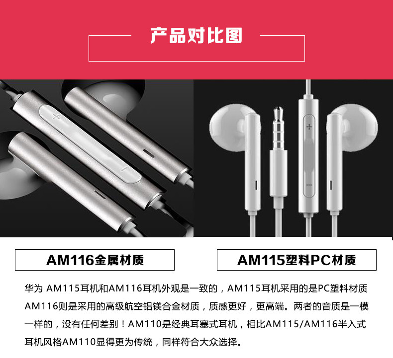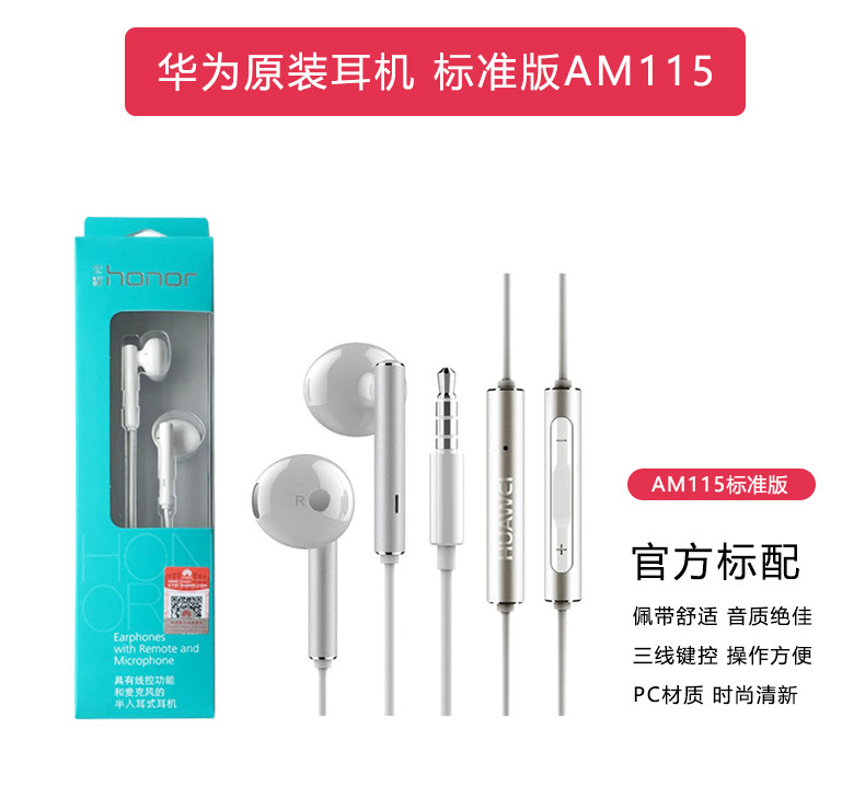 Huawei/华为 AM116原装耳机P9荣耀6入耳式Mate8 G7 4X 5S正品Plus