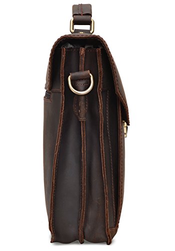 -. Feature : 100% GENUINE LEATHER: Made by high quality Crazy horse leather; Dimensions: (L)14.5" x (H)10.5" x (W)3"; Weight: 1.26kg (2.77lbs); / LARGE CAPACITY: 1 front open pocket, 1 back zipper pocket; 2 main pockets with 1 laptop compartment, 1 zipper pocket, 2 mesh pockets inside; / DURABLE&PRACTICAL Briefcase: Can fit up to 13 inch laptop, mobile phone, iPad, wallet, A4 file, textbooks, etc; Perfect for office, meeting, business, travelling or daily life; / MULTIFUNCTION: With 61" removable strap, can be used as a briefcase, shoulder bag or cross body bag; With a key for the main pockets for extra security; / GOOD CUSTOMER SERVICE: Any problems with your bag, please contact our world-class, friendly customer support team for quick solutions by contacting us through Amazon;