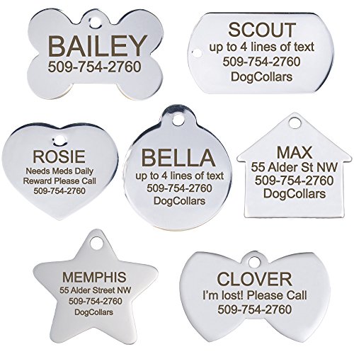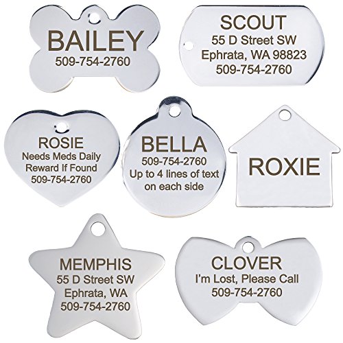 (GoTags)/Pet Supplies/Collars, Harnesses Leashes/DIRECT FROM USA/Stainless Steel Pet Id Tags: Bone, Round, Heart, and Rectangle. Includes up to 8 Lines of ...