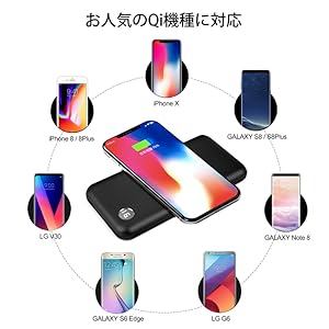 • 【対応機種】:iPhone 8/iPhone 8 Plus/iPhone X/Galaxy S7 Edge/S6/S6 Edge/6S Edge+,Nexus 4/5/6/7,HTC 8X,G2/3/4,Xperia Z3v/Z4vなどQi対応デバイスがワイアレス充電が可能で、他のスマホを有線充電が可能です。2つのUSBポットがあり、デジカメ、MP3、ゲーム機など充電できます。