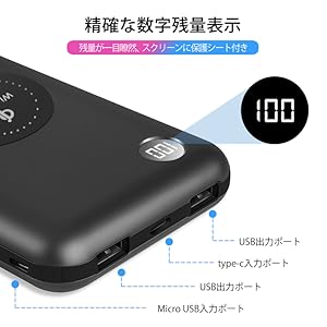• 【LED残量表示/密着度】 :LEDスクリーンあり、精確な数字で表示できます。電源ボタンを押すとバッテリー残量の状況が一目瞭然です。肝心なワイヤレス充電に、充電器とデバイスの密着度がよい、対応範囲がひろくて感度もアップ!左右にずれしても、ケースありでも問題なく充電できます。