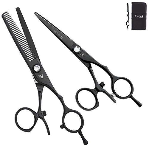 Washi Beauty - Black Satin Swivel Set 6.0” Shear 30 Tooth Thinner, Razor, & Case