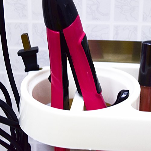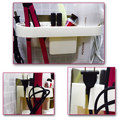 - Functional: This blow dryer holder also great to hold flat/curling iron, toothbrush, comb, hair brushes, cosmetics and other bathroom tools, space saving bathroom holder