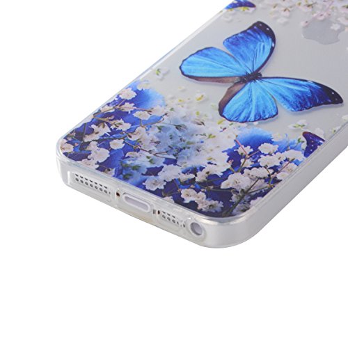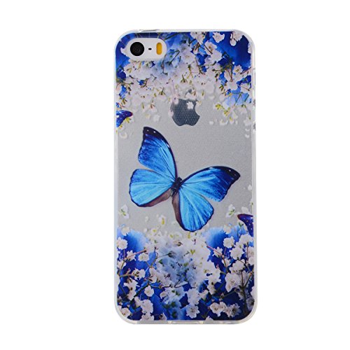 iPhone SE Tpu Case,IKASEFU Pretty Butterfly Flower Design Slim Fit Soft Gel Clear Transparent Bumper Tpu Rubber Case Cover for iPhone SE/5S/5-Butterfly Flower