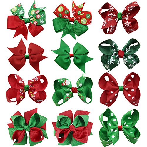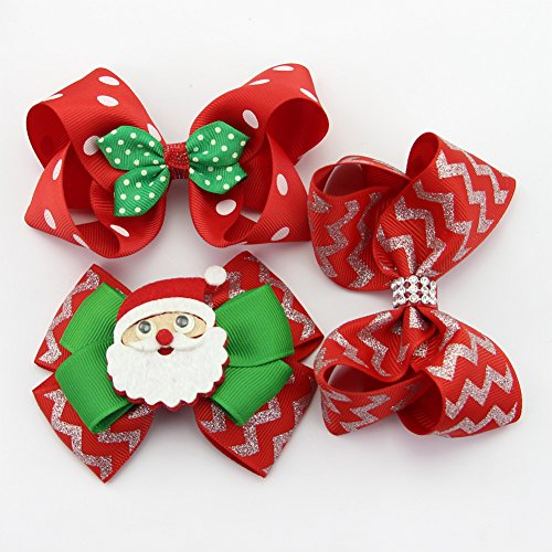 | (QtGirl)/Accessories/Hair Accessories/DIRECT FROM USA/QtGirl 4-12pcs Mixed Christmas Hair Bows Clips For Baby Girls Teens Festival Hair Accessories B... |