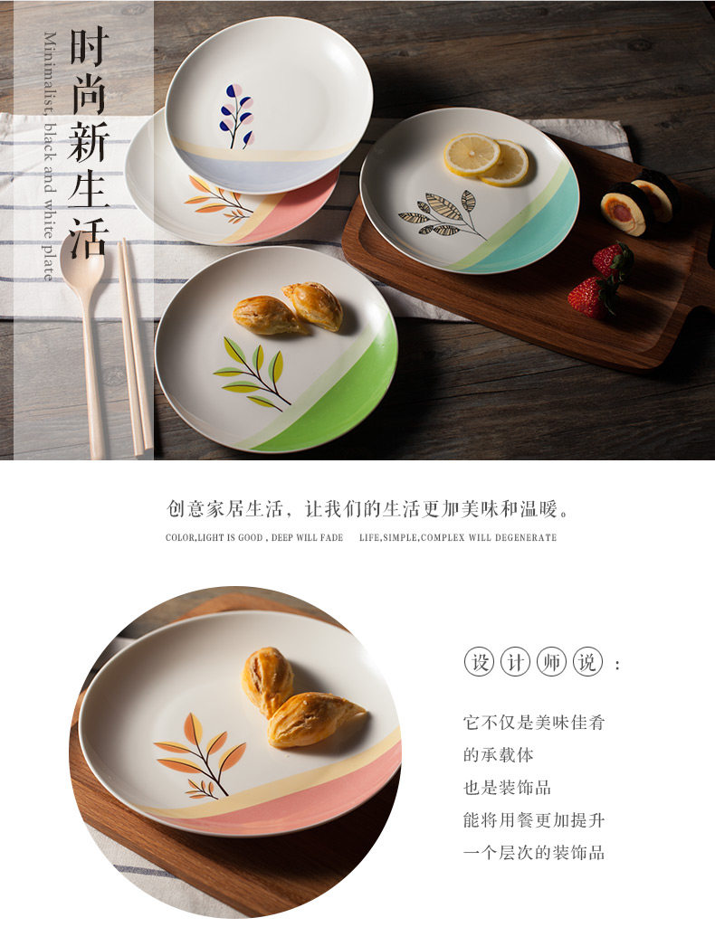 牛扒盘子西餐盘圆盘水果平盘创意肠粉陶瓷器碟子蛋糕儿童早餐菜盘