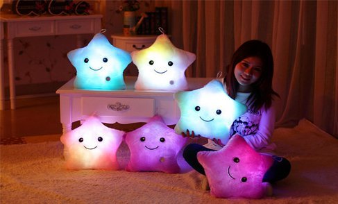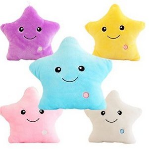 -. Binding : Toy -. Brand : Rainbow Fox -. EAN : 0710882208660 -. Feature : Awesome glowing, luminous plush pillow for your kids! / Pretty, squishy and cuddly-- perfect gift for your valentine too. / Your kids and/or your valentine will love this! / Requires 3 AA batteries (not included) / Decorative and fashion for house in daily life. • Imported -. IsAdultProduct : 0 -. Label : Rainbow Fox -. Manufacturer : Rainbow Fox -. PackageQuantity : 1 -. ProductGroup : Toy -. ProductTypeName : TOYS_AND_GAMES -. Publisher : Rainbow Fox -. Studio : Rainbow Fox -. Title : Beautiful Bling Cute Glowing Colorful Luminous LED Star Plush Pillow Stuffed Toys (Yellow) -. UPC : 710882208660