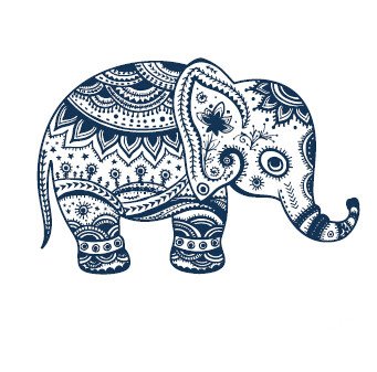 -. Title : Set of 2 Waterproof Temporary Fake Tattoo Stickers Vintage Blue Elephant Design