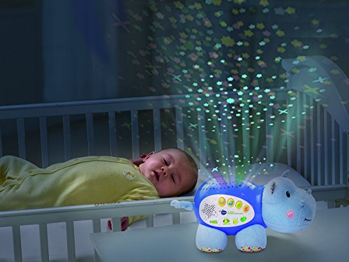 -. Binding : Toy -. Brand : VTech -. EAN : 0719040501384 -. Feature : Sweet dreams are ahead with the infant crib toy; crib projector has colorful lights that project calming night sky on nursery wall / Baby crib soother plays 100+ soothing songs, melodies, sounds and phrases; infant stuffed animal plays nursery rhymes that encourage first words / Baby crib toy is voice activated to respond to your baby's cry; timer switch plays 10, 20 or 30 minutes of lights and sounds / Baby crib soother has a volume control that can be adjusted to suit your baby's needs; baby music toy has 6 settings for custom light play / Makes a perfect baby gift for infants birth and up; baby toy requires 2 AA batteries that are included for demo only, use new batteries for regular use -. IsAdultProduct : 0 -. Label : VTech Baby -. Manufacturer : VTech Baby -. ProductGroup : Toy -. ProductTypeName : TOYS_AND_GAMES -. Publisher : VTech Baby -. Studio : VTech Baby -. Title : 4 Different Colors & Sounds of Peaceful Tunes Hippo -. UPC : 719040501384