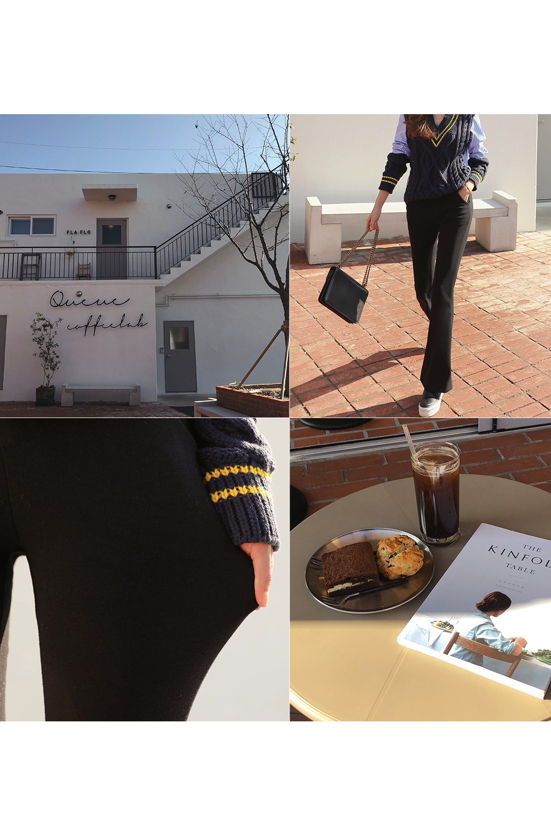 MD COMMENT 따뜻하면서도 세련된 핏을 연출해 주는신축성 좋은 부츠컷 팬츠를 소개할게요.허리 높게 올라오는 하이웨이스트 디자인과발목을 감도는 살짝 롱한 디자인으로 보다 길어보이는레그라인을 연출해주구요.무릎까지 슬림하게 핏되며 그 밑으로는 자연스럽게 퍼지는부츠컷 디자인으로 날씬해보이며 세련된 핏을 연출해드려요.신축성이 매우 뛰어나 편안한 착용감을 느껴볼 수 있으며두꺼운 두께감으로 한 겨울에도 무리없이 착용이 가능해요^^허리 라인에도 스판이 있어 안 입은듯한 느낌을 받을 수 있어요!양 사이드 포켓으로 실용성을 갖춰주었으며프론트 지퍼로 손쉽게 탈, 착용을 도와드리구요.히든 지퍼로 더욱 깔끔하게 착용되어진답니다^^깔끔한 디자인에 베이직한 블랙, 브라운 2컬러로 구성되어다양한 상의와 매치하기 좋아FW시즌 너무 편해 자주 손이 가게 될 팬츠 아이템으로 추천드려요!COLOR/SIZE 블랙,브라운S,MMODEL FITTING 블랙/S