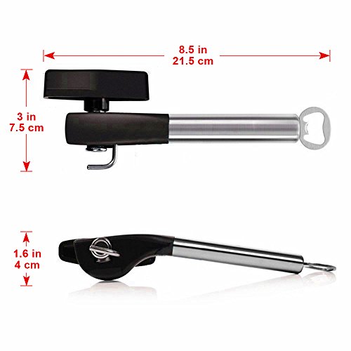 1.Safety can opener made from high-quality food-safe stainless steel,cutting wheel never touches food.Smooth edge side blade to ensure that its user is safe from any harm.