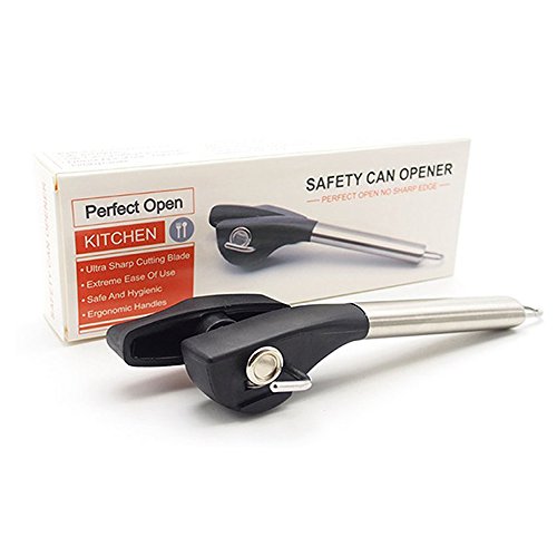 SHU UFANRO Safety Can Opener,Stainless Steel Manual Heavy Duty Lid Lifter for Bottle Cans Tin Jar,Professional and Perfect Portable Can Opener Tool for Kitchen and Under Cabinet (Black)