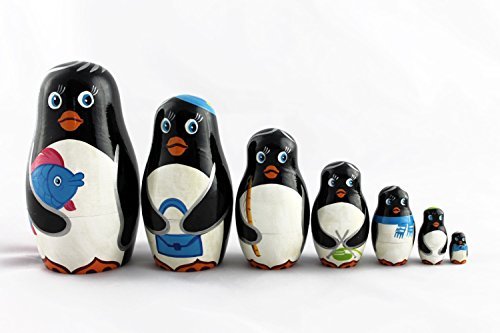 -. Title : Matryoshka Russian Nesting Doll Babushka Beautiful Family Penguins Set 7 Pieces Pcs Hand Painted Handmade Souvenir Gift Handicraft