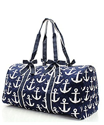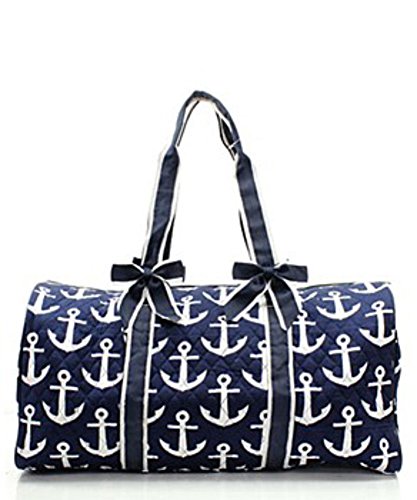 -. Title : Quilted Navy Nautical Anchor Monogram Ready 20" Overnight Duffle Bag
