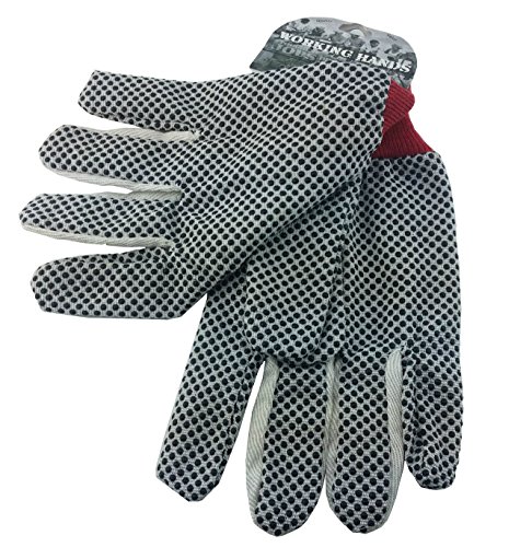 Working Hands Natural White Cotton Twill Gloves w/ PVC Black Dots Medium