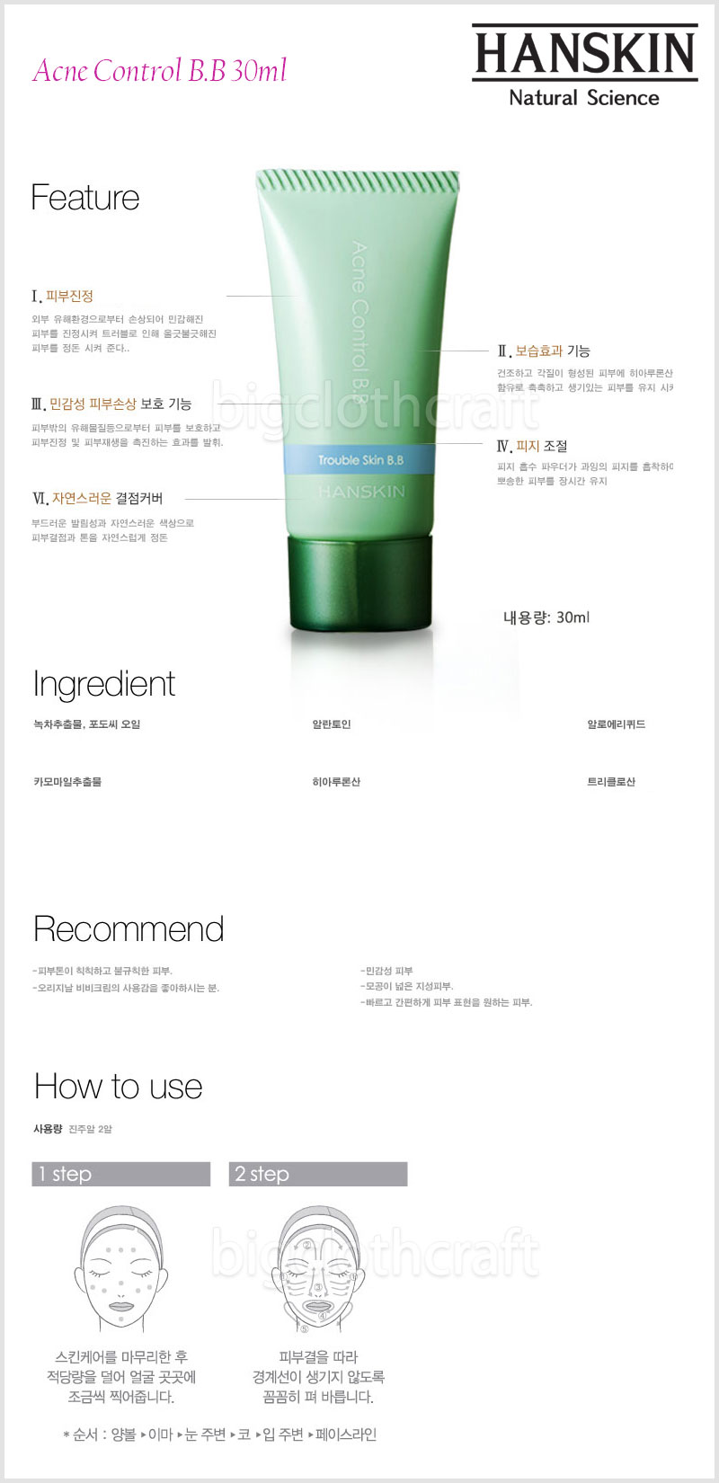 Acne Control BB Cream is an oil-free low skin irritation formula that forms protective film