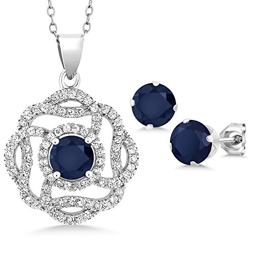 -. Title : 5.06 Ct Round Blue Sapphire 925 Sterling Silver Pendant Earrings Set