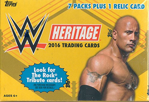 [Product Information]- 2016 Topps Heritage Wrestling Series Unopened Blaster Box of Packs with One GUARANTEED Relic Card Per Box plus 63 additional cards.