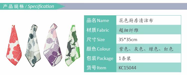 4条装北欧简约风厨房清洁巾涤锦超细纤维吸水干擦碗玻璃抹布35cm