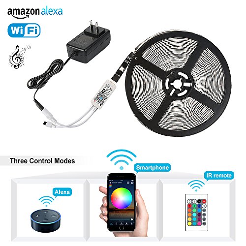 Led light strip, Non-waterproof Wifi Wireless Smart Phone Controlled Strip Light Kit 32.8ft 300leds 5050 Black PCB Non-Waterproof LED Lights ,Working with Android and IOS System,Alexa